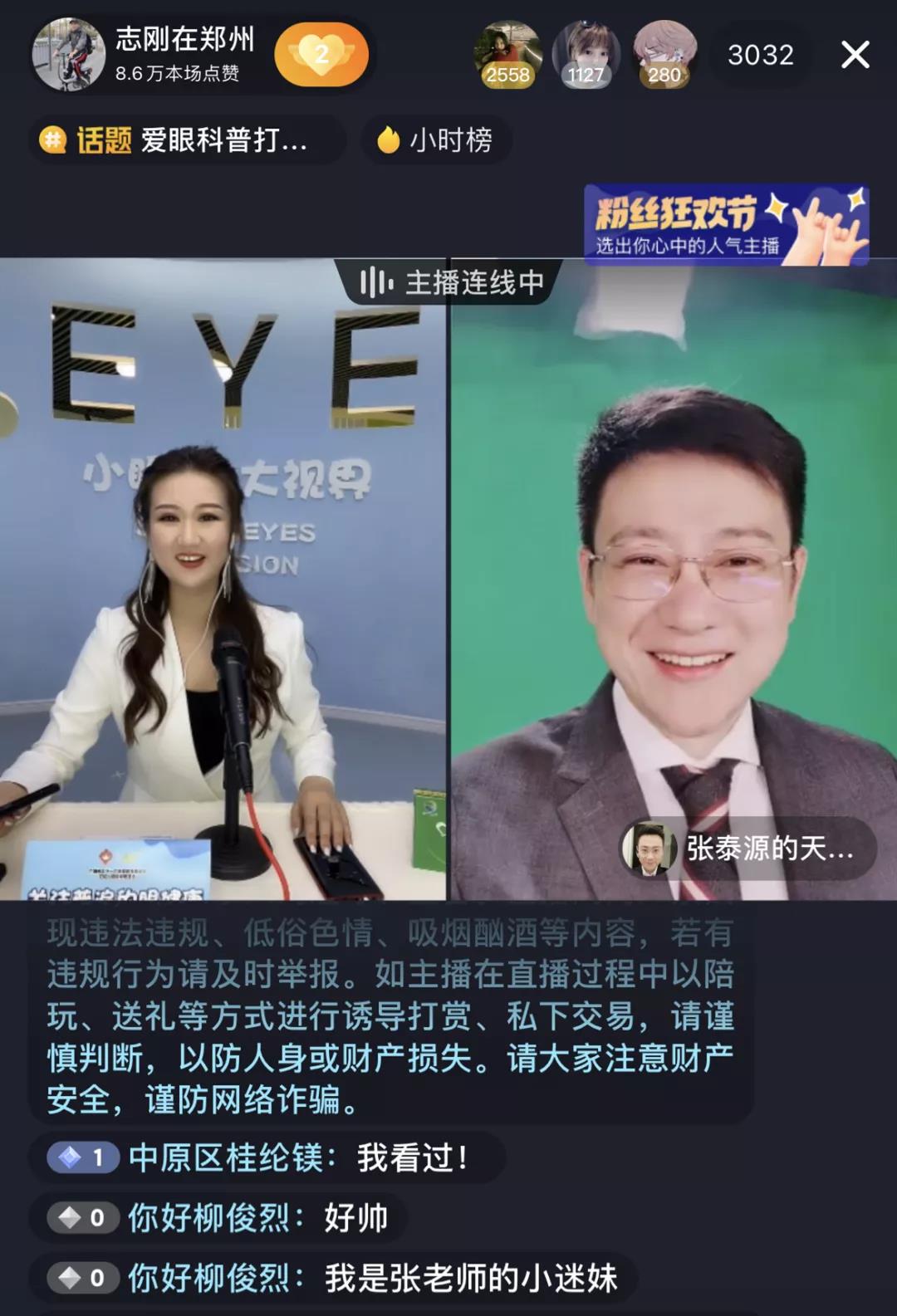 抖音直播間,聯(lián)合河南主持人sasa一起助力科普公益,倡導(dǎo)全民護(hù)眼。