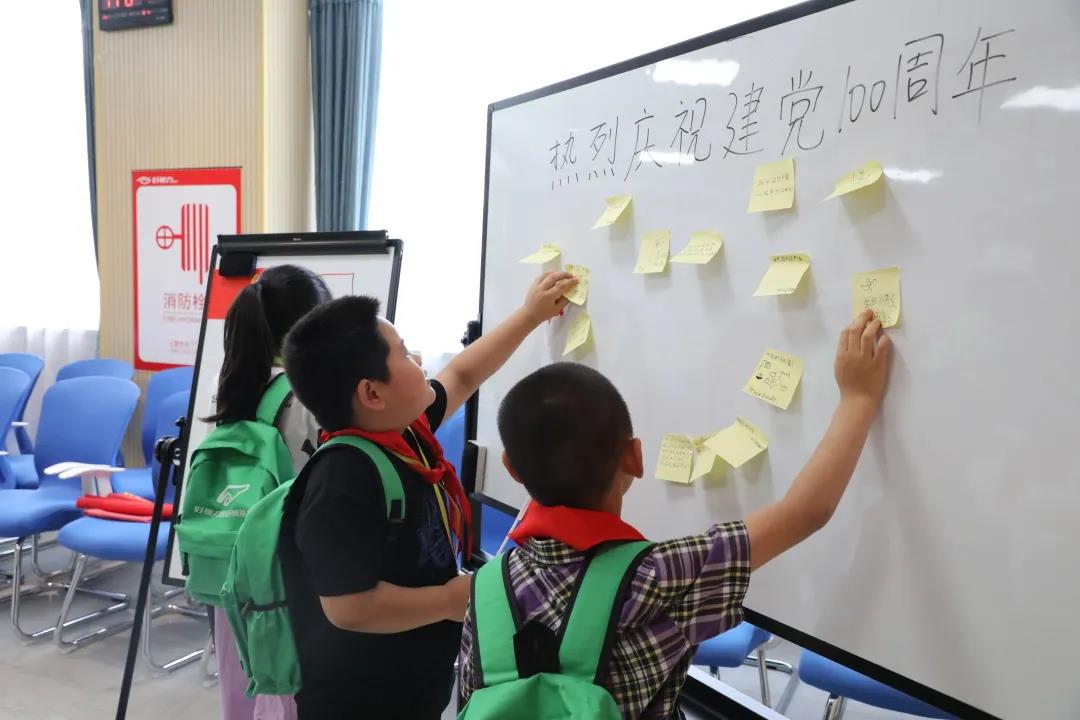 在建黨節(jié)來(lái)臨之際,小朋友們和中共梧桐辦事處第三聯(lián)合黨支部志愿者小哥哥小姐姐,一起在黨員之家寫(xiě)下祝福,共同慶祝黨的百歲生日。
