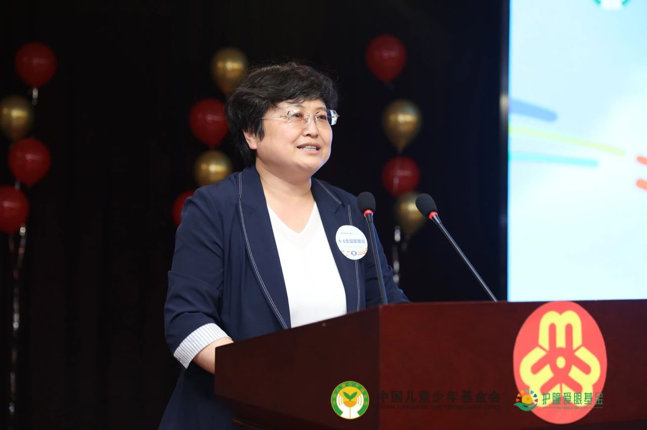 中國兒童少年基金會副秘書長王海靜出席捐贈儀式并致辭,呼吁“家庭、學(xué)校、社會”共同育兒,為兒童近視防控創(chuàng)造優(yōu)良的大環(huán)境。為新鄉(xiāng)的小朋友帶去祝福,希望每個孩子都擁有光明的未來。