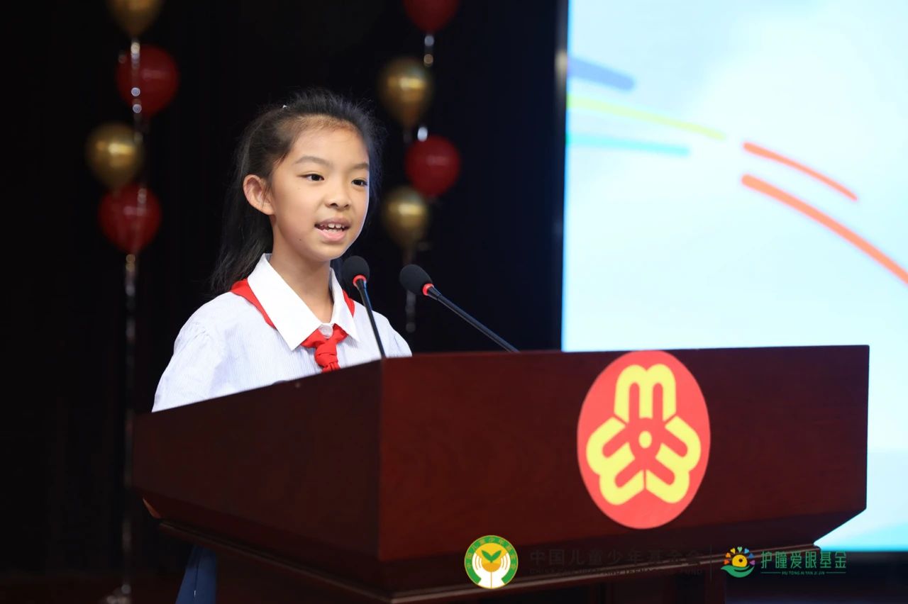 學(xué)生代表許桐偌在本次捐贈儀式中呼吁,堅持良好的用眼習(xí)慣,號召同學(xué)們成為愛眼小使者,向身邊的人宣傳護(hù)眼知識,帶動更多的人關(guān)注和加入愛眼護(hù)眼的隊伍。