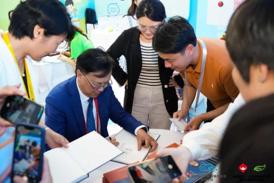5月17日下午,瞿佳教授來到A23展位為參展觀眾簽贈《近視防控瞿佳2023觀點》,現(xiàn)場學術(shù)熱情滿滿,人們在展位旁排起了長龍。這些書籍不僅為視覺健康行業(yè)從業(yè)者在展開相關(guān)工作時提供了權(quán)威依據(jù)與參考,也讓他們盡覽近些年近視防控工作的熱點與新潮。