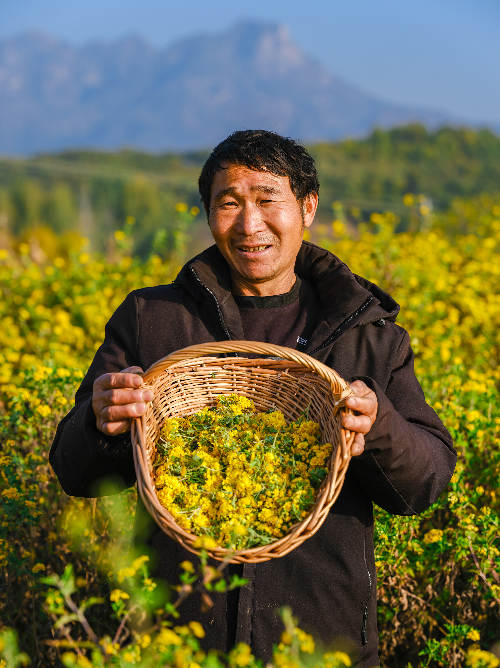 野菊花性微寒,味辛,歸肝、心經,具有清熱解毒、疏風散熱、清肝明目等功效。豫南山區(qū)四季分明、溫度適宜,土壤酸堿度適中,其獨特的氣候賦予了野菊花非凡的藥用價值。采摘、分揀、蒸制、晾干…每一道工序都承載著匠人的心血與對品質的執(zhí)著