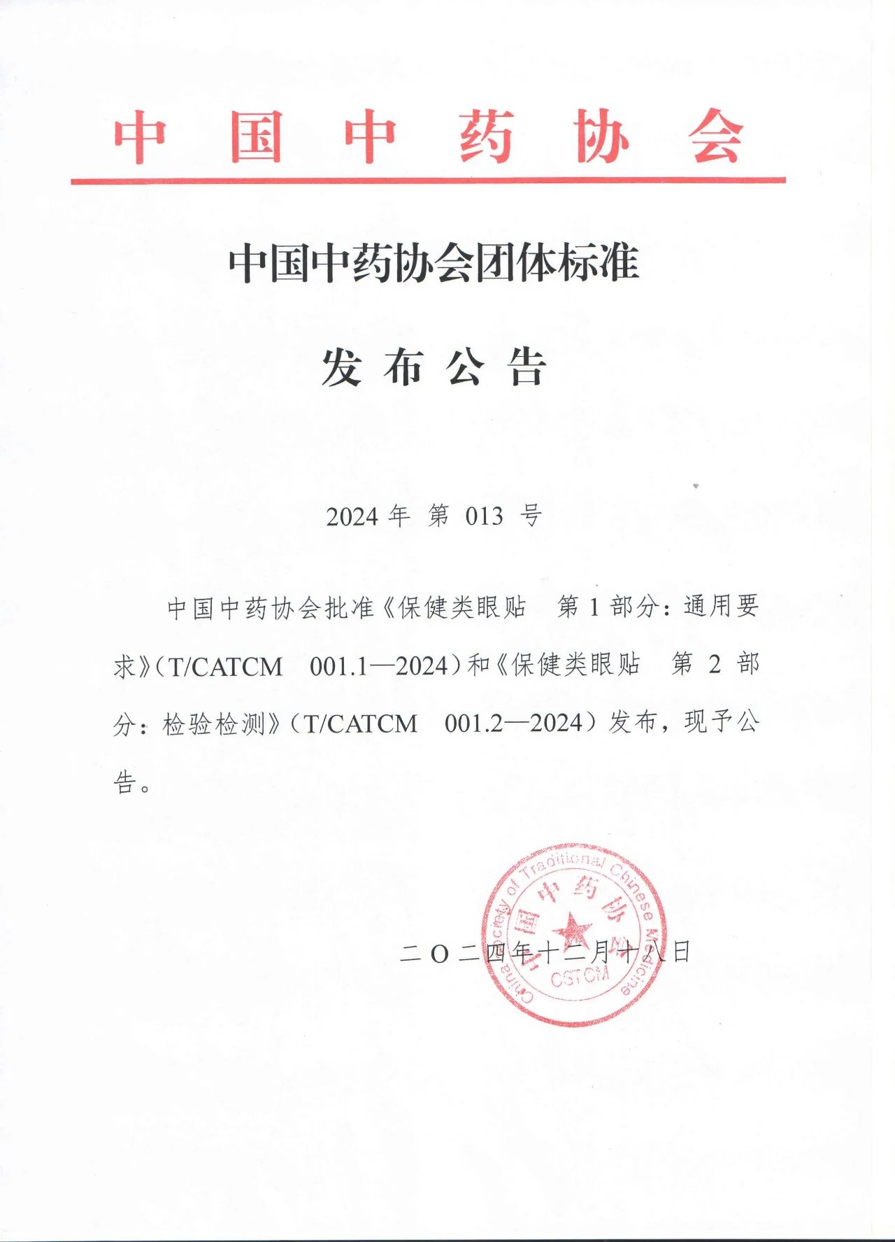 2024年,中國(guó)中藥協(xié)會(huì)邀請(qǐng)社會(huì)各相關(guān)企業(yè),以科學(xué)化、系統(tǒng)化的標(biāo)準(zhǔn)體系對(duì)《保健類眼貼》團(tuán)體標(biāo)準(zhǔn)進(jìn)行了修訂,并將于2025年6月18日正式實(shí)施。