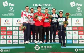 陳艾森(左三)曹緣(右三)男子雙人10米臺冠軍