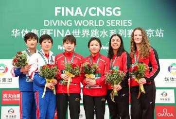 施廷懋(左三)王涵(右三)女子雙人3米板冠軍