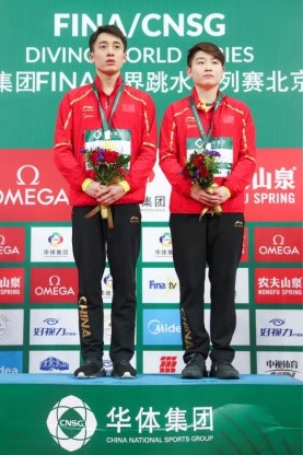 練俊杰(左一)司雅杰(右一)混合雙人10米臺冠軍