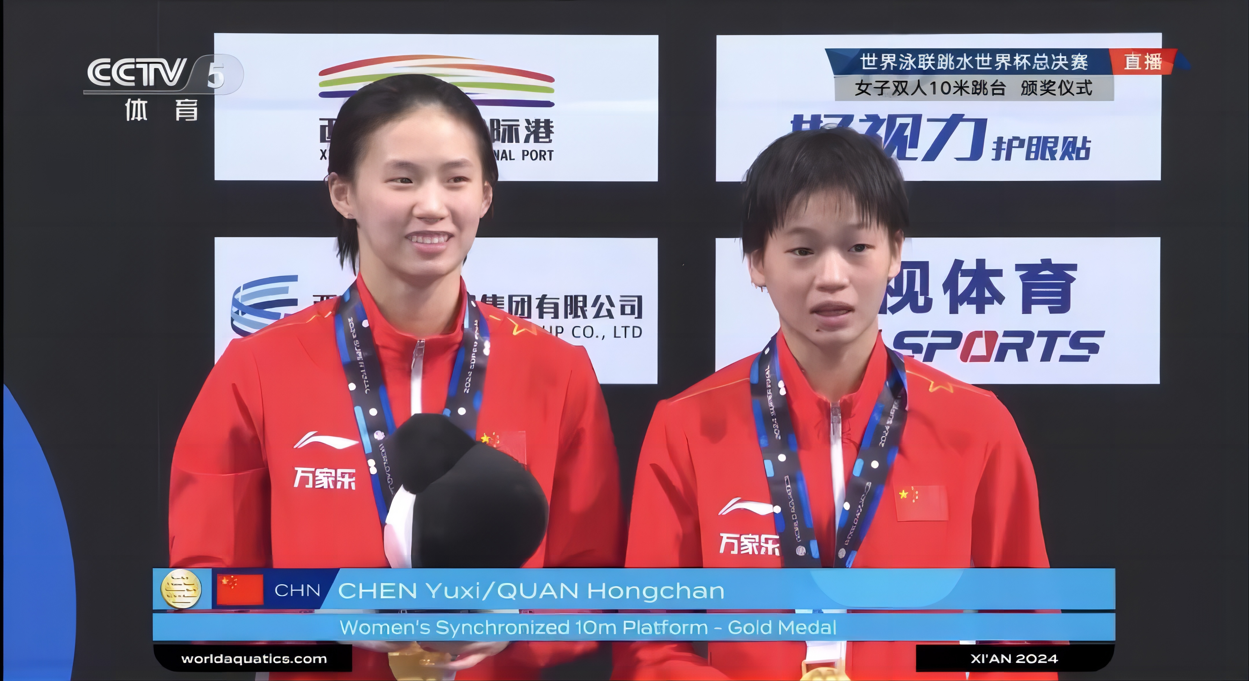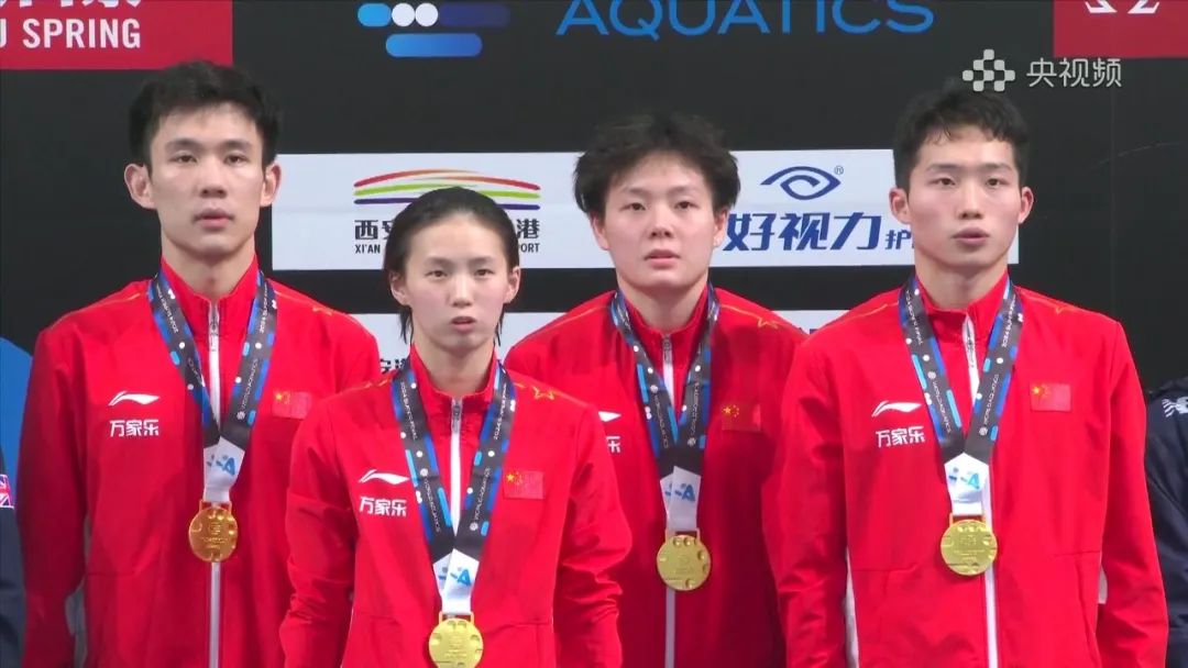 419日,2024世界泳聯(lián)跳水世界杯總決賽在西安奧體中心游泳跳水館開賽。女子雙人10米跳臺(tái)決賽中,陳芋汐搭檔全紅嬋五跳獲得364.86分,斬獲冠軍。男子雙人3米板決賽中,王宗源搭檔龍道一出戰(zhàn),最終以總分474.75奪冠。壓軸進(jìn)行的男女混合團(tuán)體決賽中,由楊昊、王宗源、陳藝文、陳芋汐組成的中國隊(duì)以總分500.75分毫無懸念?yuàn)Z取金牌。